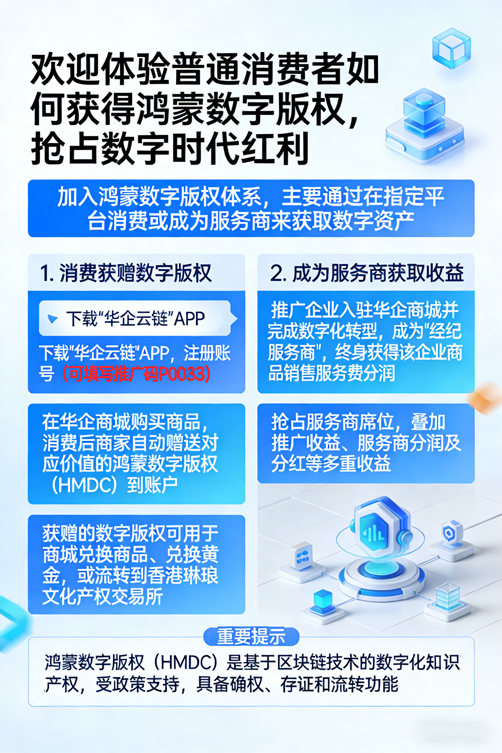 当消费与投资的壁垒被彻底打破,当每一笔日常购物都在沉淀个人数字资产,普通人也获得了参与数字财富分配的入场券。鸿蒙数字版权服务空间打造华企商城的探索,正在开辟一条让消费价值真正回归消费者自身的新路径。